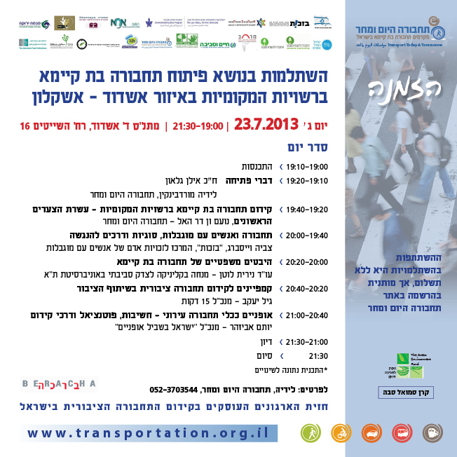 תחבורה היום ומחר הארגון הישראלי לתחבורה בת קימא (ע”ר) | 03-5660823 | beyarok@gmail.com