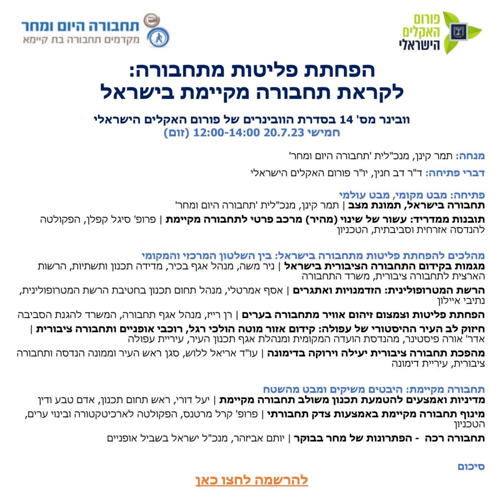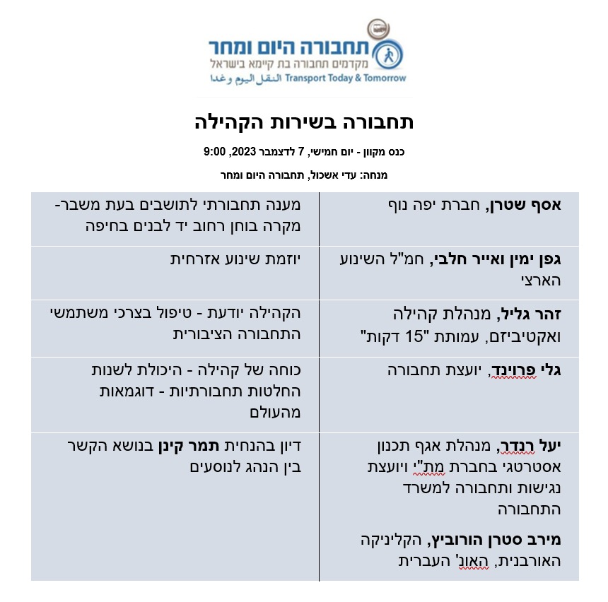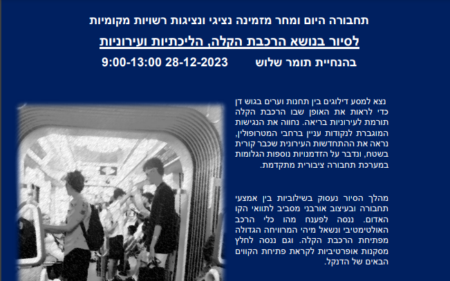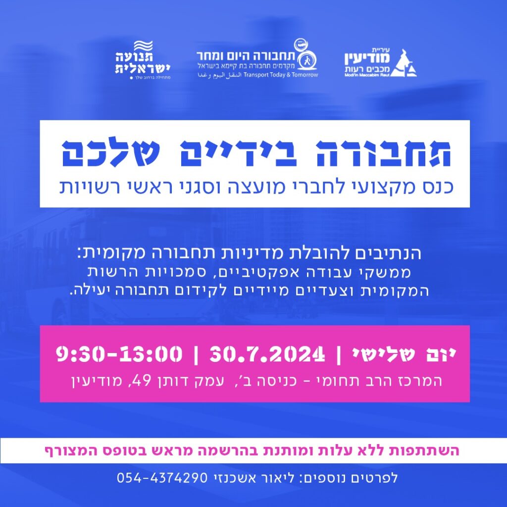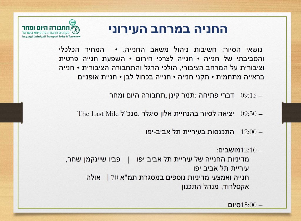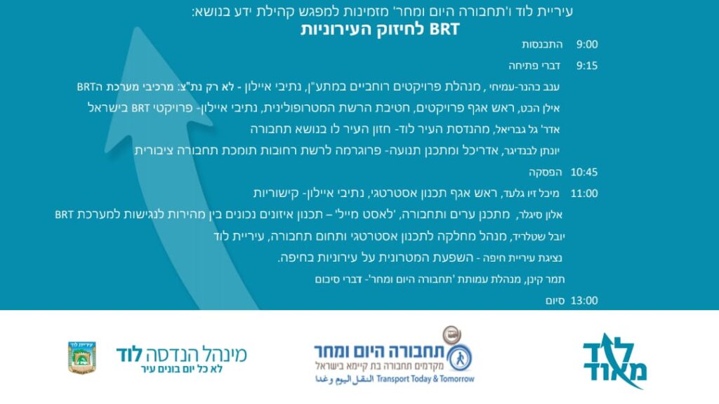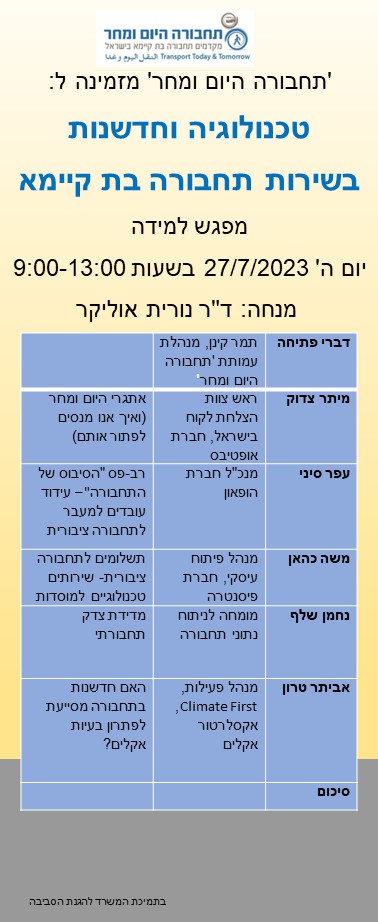 תחבורה היום ומחר הארגון הישראלי לתחבורה בת קימא (ע”ר) | 03-5660823 | beyarok@gmail.com