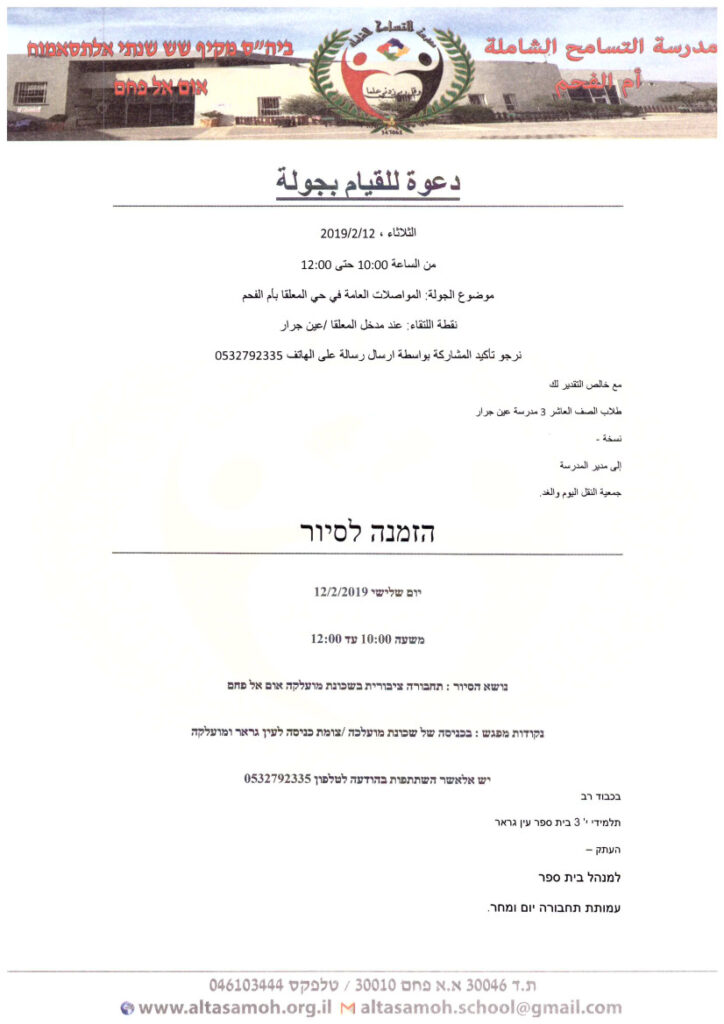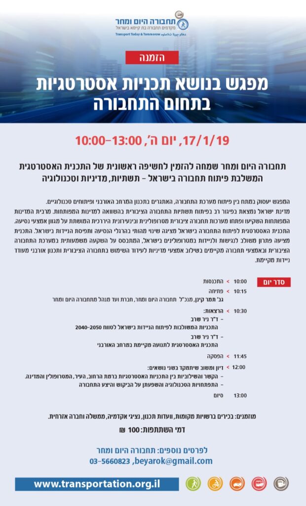 תחבורה היום ומחר הארגון הישראלי לתחבורה בת קימא (ע”ר) | 03-5660823 | beyarok@gmail.com