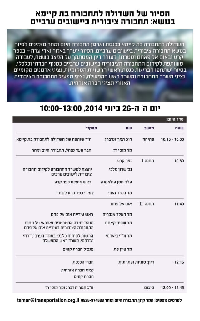 תחבורה היום ומחר הארגון הישראלי לתחבורה בת קימא (ע”ר) | 03-5660823 | beyarok@gmail.com
